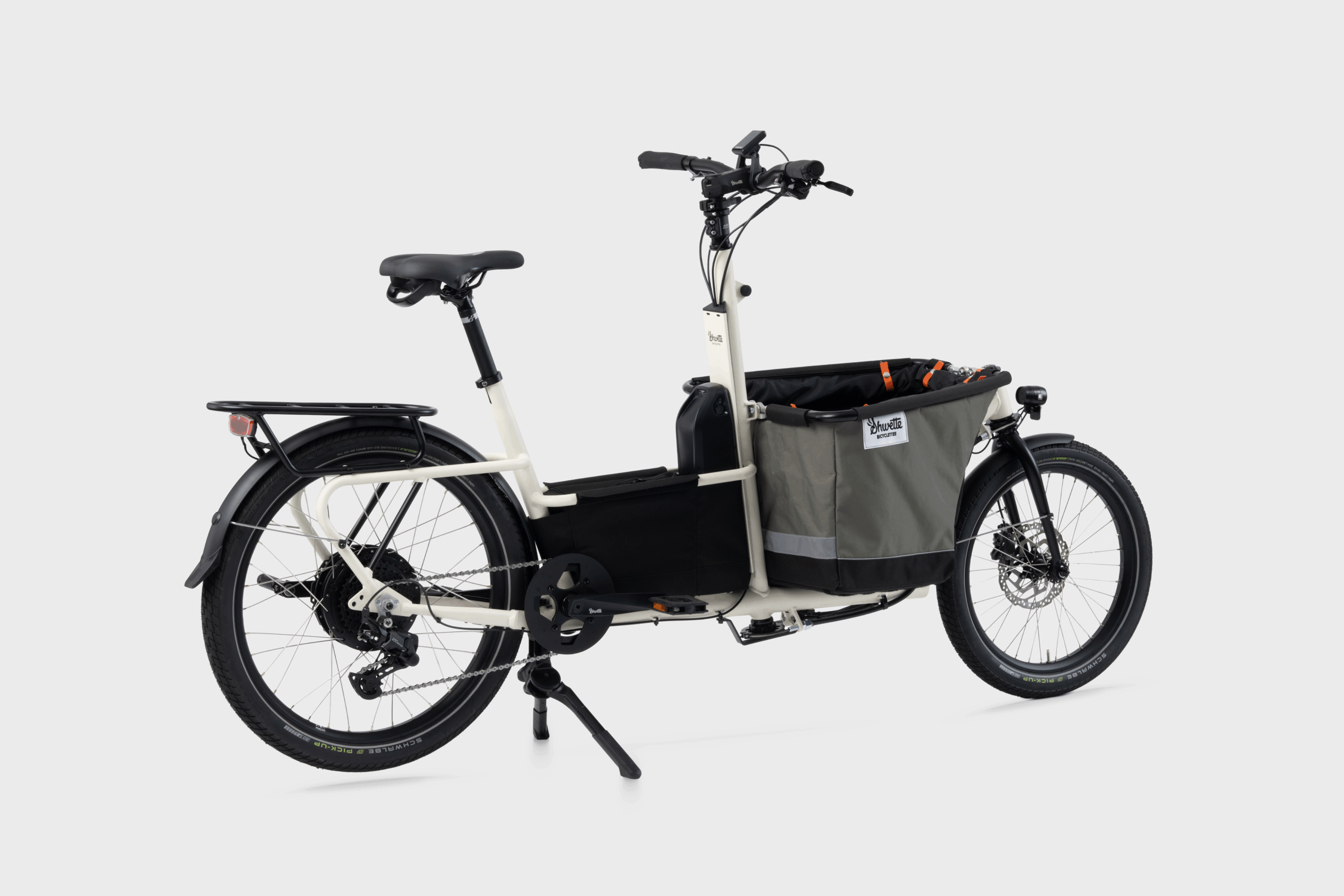 – Ultra spacieux, transporte jusqu’à 120 litres, 30 kg dans la caisse, en toute sécurité. L’allier au quotidien, c’est le vélo à tout faire ! En mode « good vibes only », roulez léger, zen et décontracté